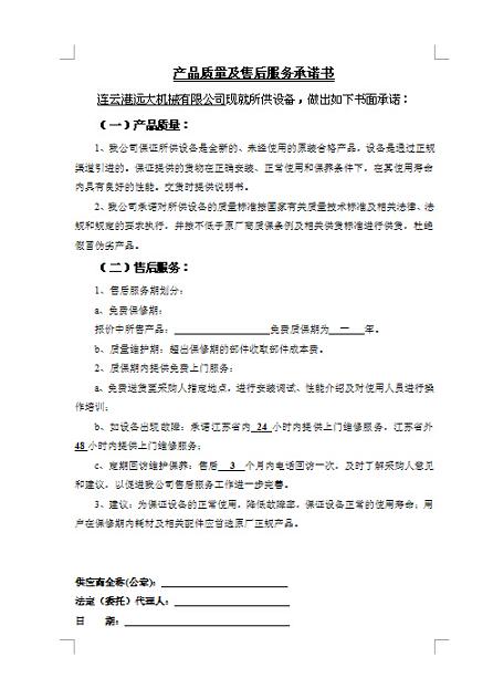 產(chǎn)品質(zhì)量及售后服務承諾書